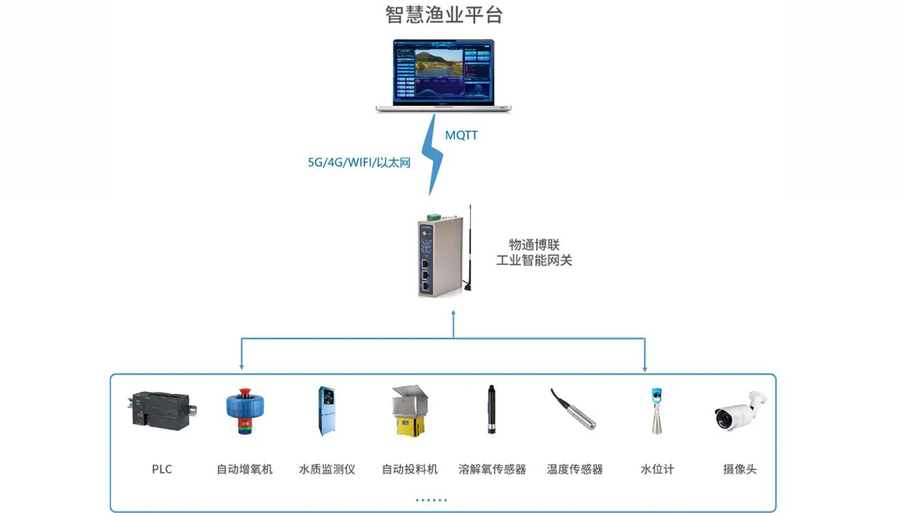 在水產(chǎn)養(yǎng)殖池塘或養(yǎng)殖箱內(nèi)安裝各類水質(zhì)監(jiān)測傳感器,如溶氧傳感器、酸堿度傳感器、氨氮傳感器等,通過物通博聯(lián)的工業(yè)智能網(wǎng)關(guān)將采集到的水質(zhì)數(shù)據(jù)實時傳輸至水產(chǎn)養(yǎng)殖水質(zhì)監(jiān)控平臺。平臺對數(shù)據(jù)進行實時分析和處理,當溶氧含量過低、酸堿度失衡或氨氮含量超標時及時發(fā)出預(yù)警。根據(jù)水質(zhì)數(shù)據(jù)自動控制增氧設(shè)備、水質(zhì)調(diào)節(jié)設(shè)備等,實現(xiàn)水質(zhì)的遠程調(diào)節(jié)。同時,平臺具備養(yǎng)殖數(shù)據(jù)分析功能,為養(yǎng)殖戶提供決策支持。