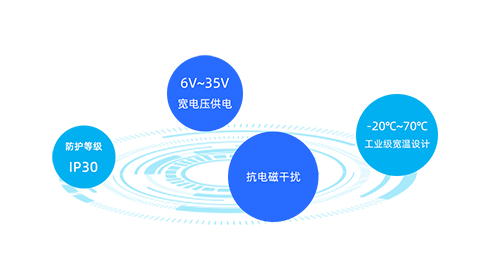 支持6V~35V寬電壓供電,-20℃~70℃工業(yè)級(jí)寬溫設(shè)計(jì),抗電磁干擾,適應(yīng)更多對(duì)供電要求和溫度要求的應(yīng)用現(xiàn)場(chǎng)。